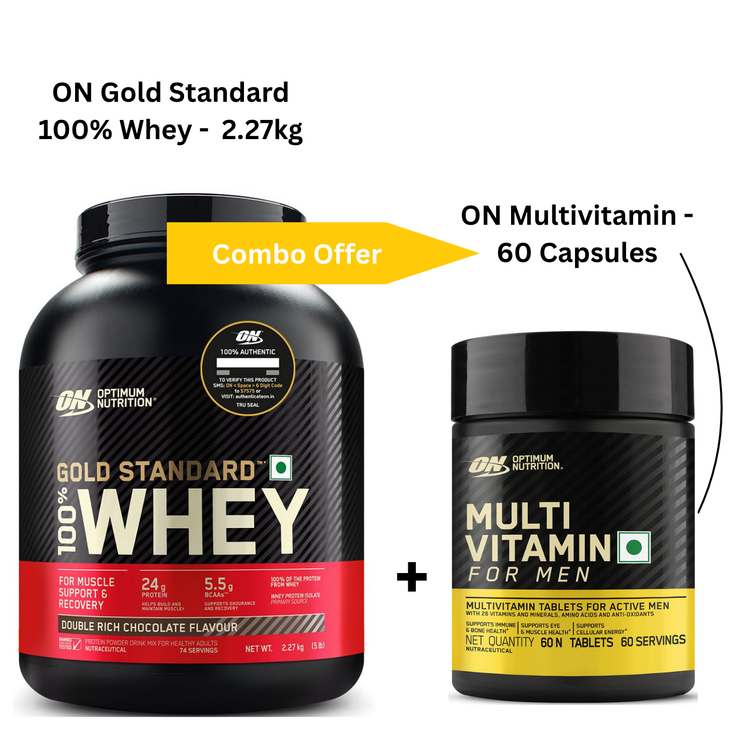 OPTIMUM NUTRITION (ON) Gold Standard 100% Whey Protein Powder – 2.27kg + ON Multivitamin 60 Tabs